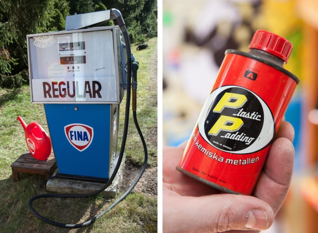 – Däremot är det värre med pumparna. Jag försökte övertala en ägare till en äkta pump att sälja, men han vägrade. Då hittade jag den här som är exakt samma modell men som stått på en Din-X-mack, och då var det inte mycket att tveka på. Jag slog till och lackade om den och försåg den med varumärkets emblem, säger han och visar pumpen som ser ut som om den fortfarande är i bruk.