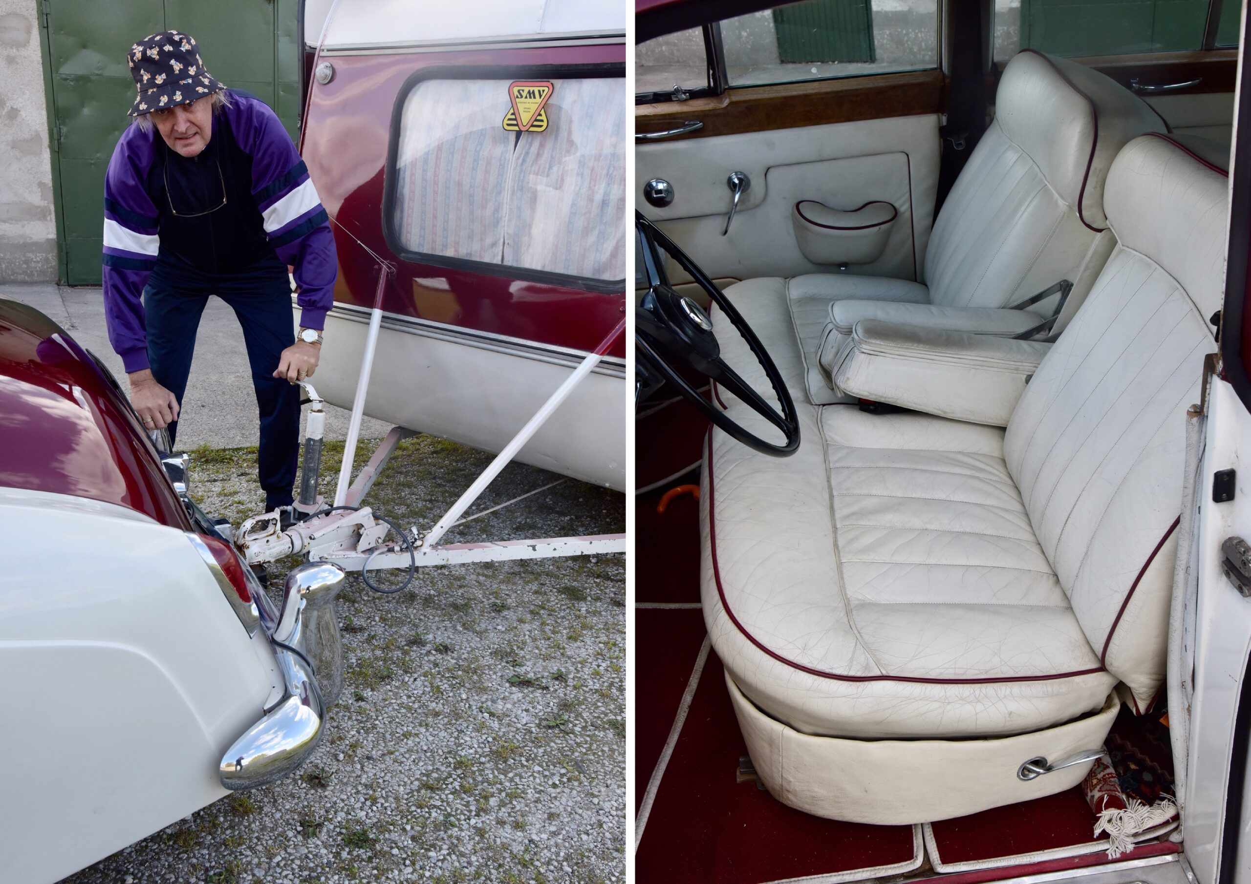 Vi undrar hur de fann varandra: husvagnen, tillverkad av SMV i Örebro, och den flärdfulla Rolls-Roycen?