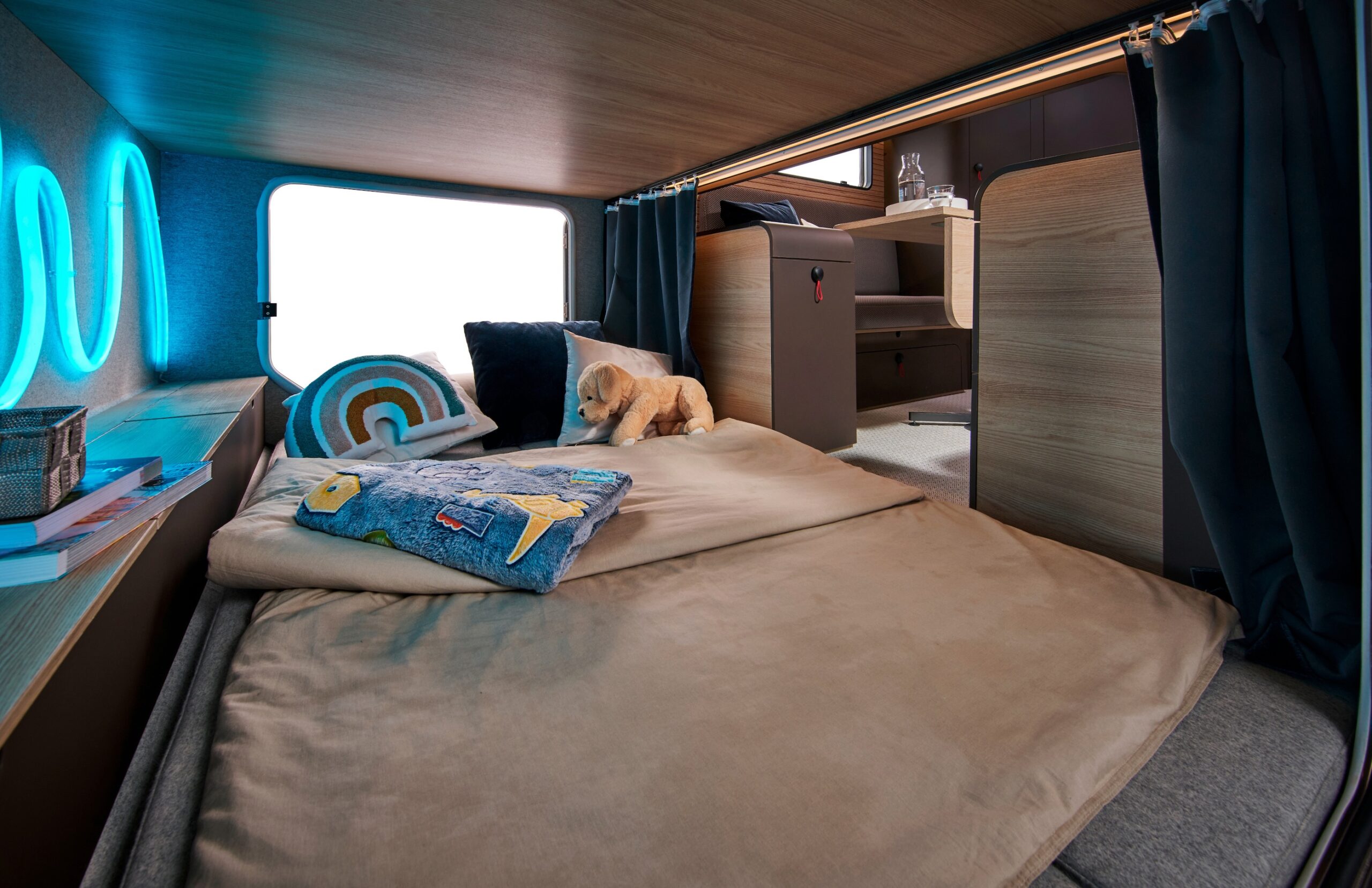 Husvagnarna är dessutom självdrivande. De behöver ingen dragbil, de kan följa efter dig som en trogen golden retriever. Du kör före med din elbil – vagnen rullar bakom – utan att ens vara kopplad till en dragkrok. Eller så skickar du den i förväg till campingen via kommandot: “Hej Siri, skicka husvagnen till Böda.”