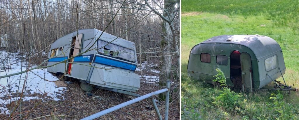 Något liknande finns inte för husvagnar. Där är det du som ägare som ansvarar för att vagnen tas om hand på ett riktigt sätt när den tjänat ut. Det kan vara en förklaring till att ett antal ”gamlingar” har dumpats ute i naturen. Gotland är en av flera kommuner där de hittade rester av övergivna husvagnar. Miljöinspektör Martin Beijer undersökte spillrorna i skogen vid Visborg. Att överge en husvagn ute i naturen innebär ett miljöbrott men det kan vara svårt att hitta ägarna.