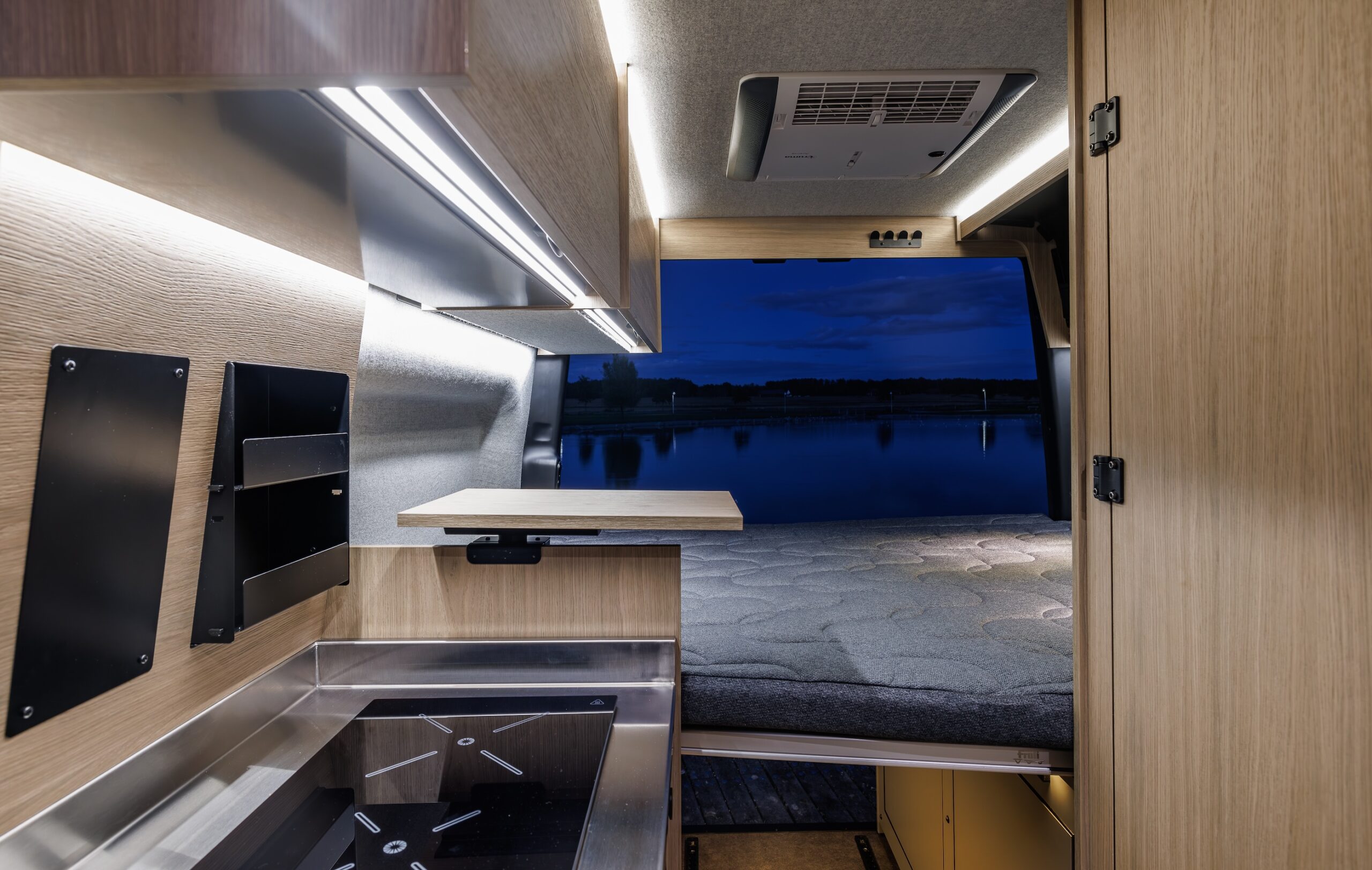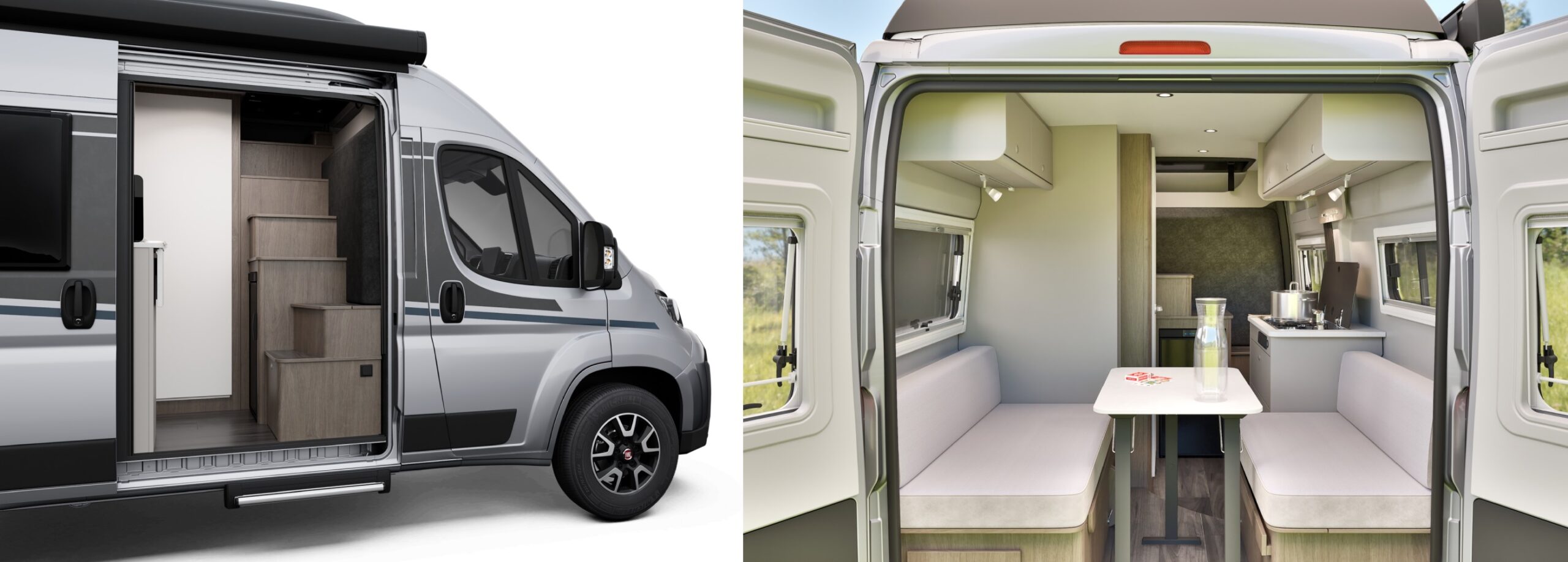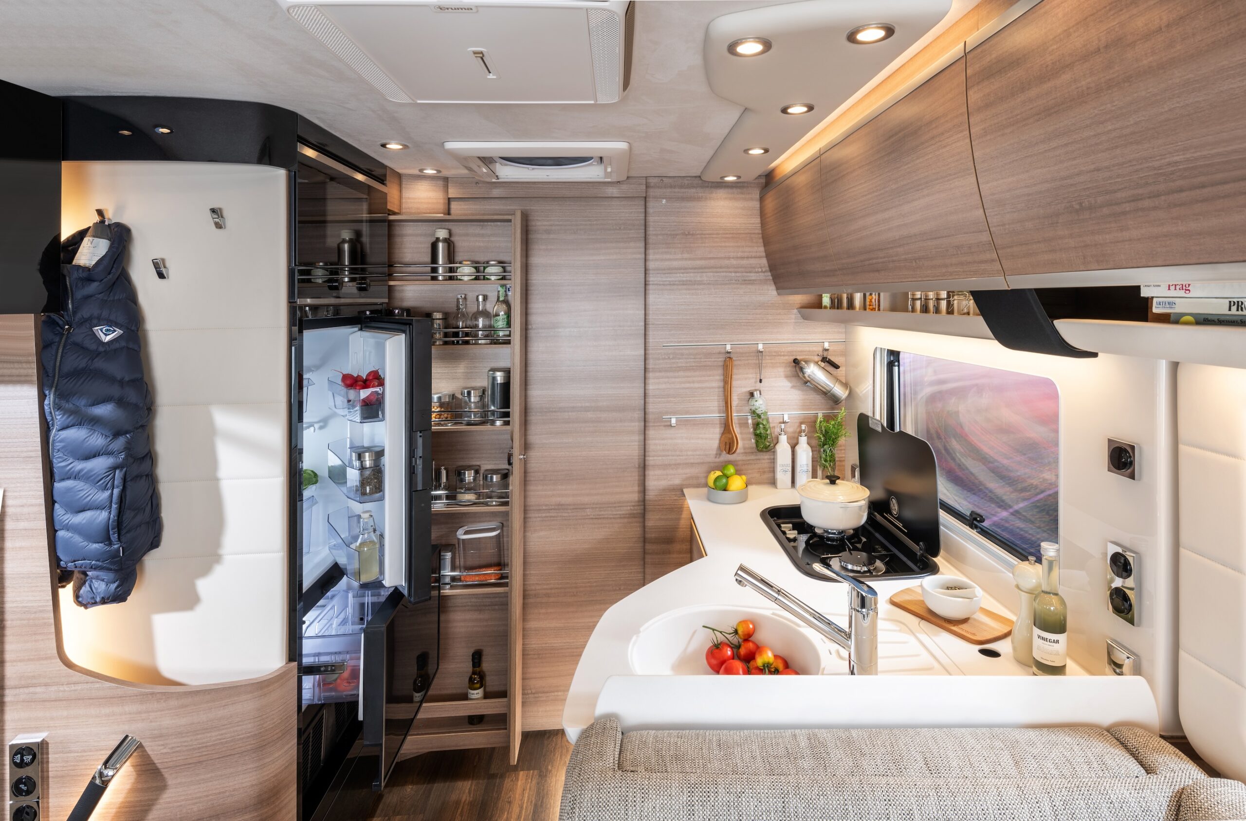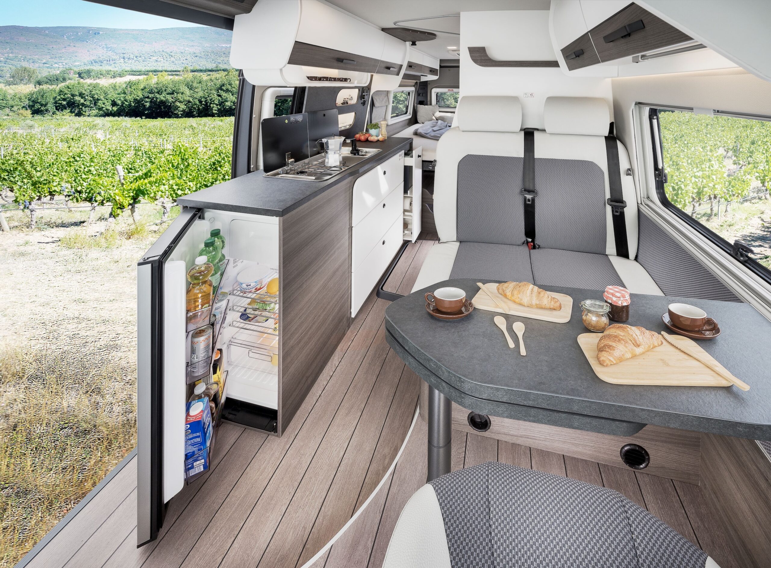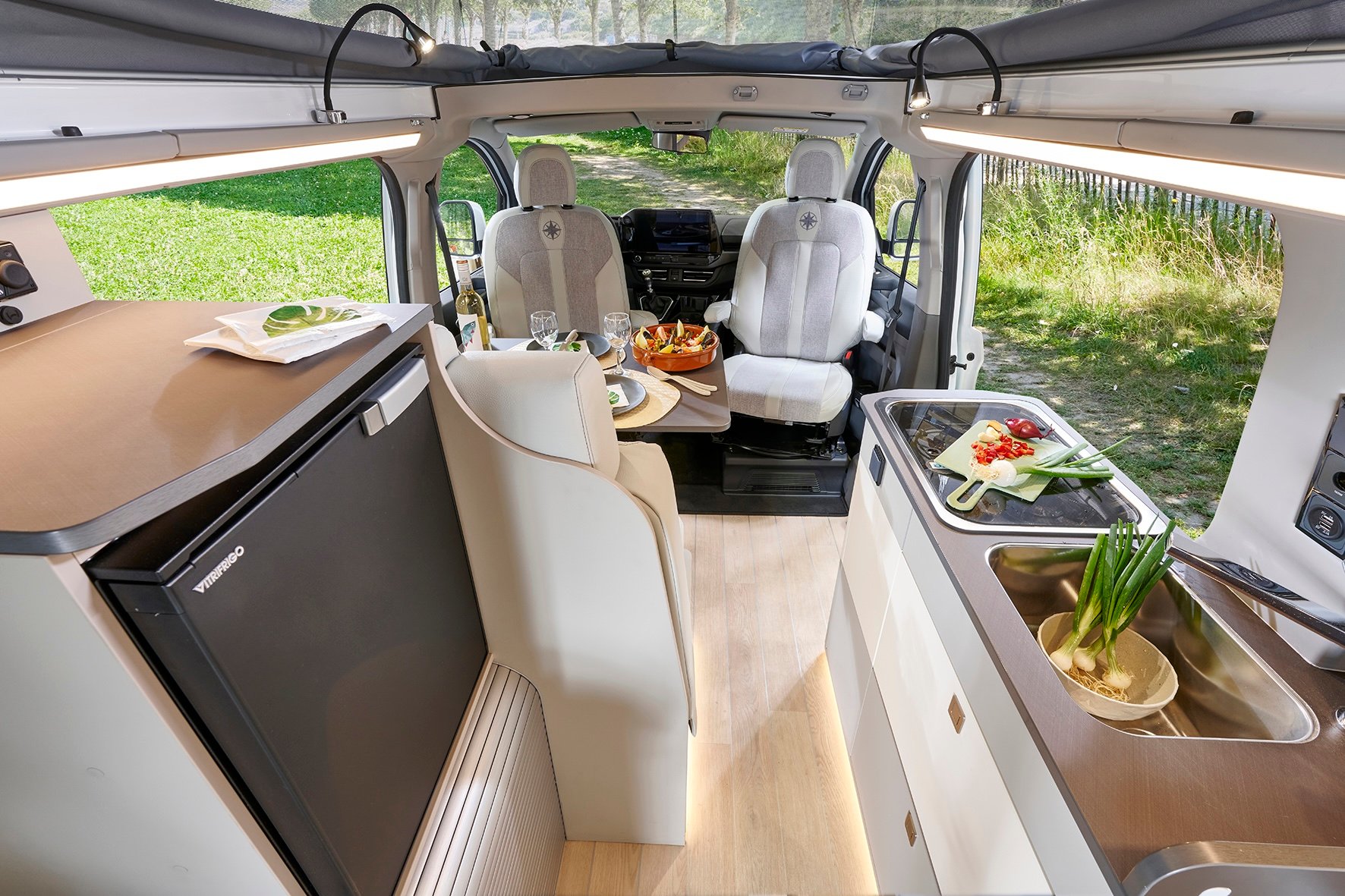 Inför det nya modellåret fokuserar VanTourer ännu mer på vardaglig användbarhet – och det visar de med hur mycket funktion som kan paketeras i en kompakt layout. Sortimentet baseras på Fiat Ducato och nu är det framför allt ett nytt kök som syns i rampljuset. Detta består av ett energieffektivt 90-liters kompressorkylskåp med dubbelsidig öppning, smart integrerad soptunna i det utdragbara skåpet, komplett med en hushållsrullehållare. Den öppna siktlinjen genom fordonet skapar också en extra luftig känsla av rymd. Nytt för i år är även den baktill integrerade anslutningsboxen för utomhusdusch.