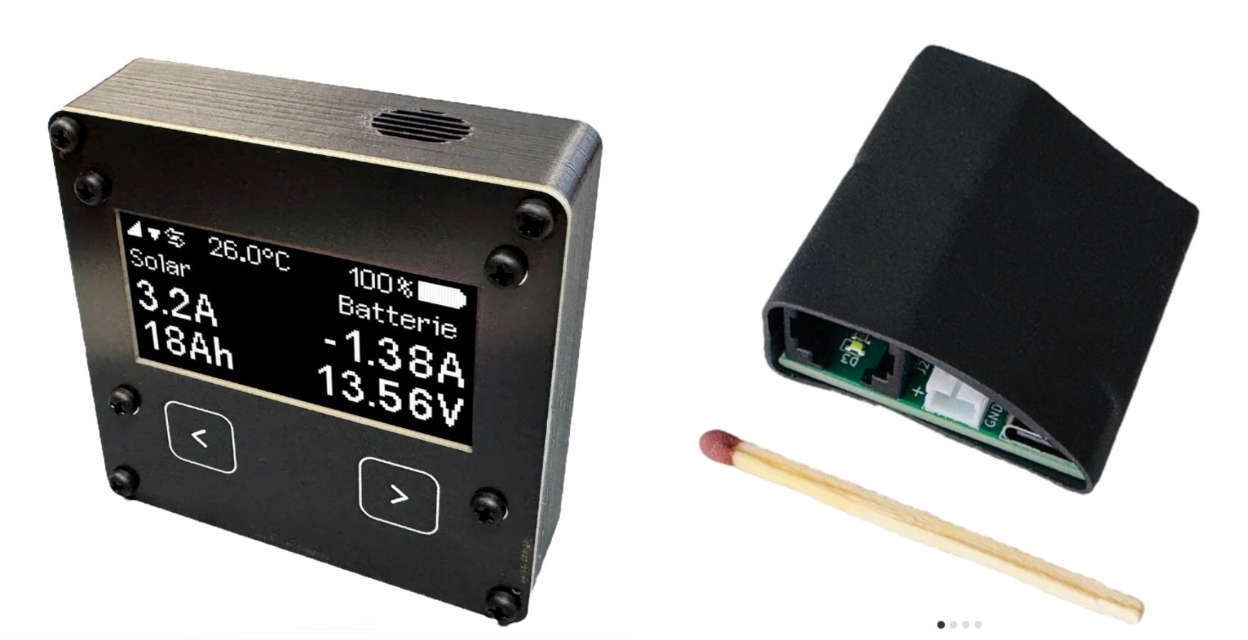 • Det schweiziska företaget BlueBattery grundades för några år sedan av en campingentusiast, som under sina resor tillsammans med familjen upptäckte att det fanns ett behov av att kunna kontrollera statusen hos 12V-systemet. Tillsammans med likasinnade utvecklade han därför ett system med shuntar och andra tillbehör, baserat på en wifi-uppkopplad monokrom display i standardformatet 80 x 80 millimeter. Displayen kommunicerar med mätshuntarna (batteri och/eller solcell) via Bluetooth Low Energy (BLE), och displayen har en egen inbyggd webbsida för konfigurering och information.