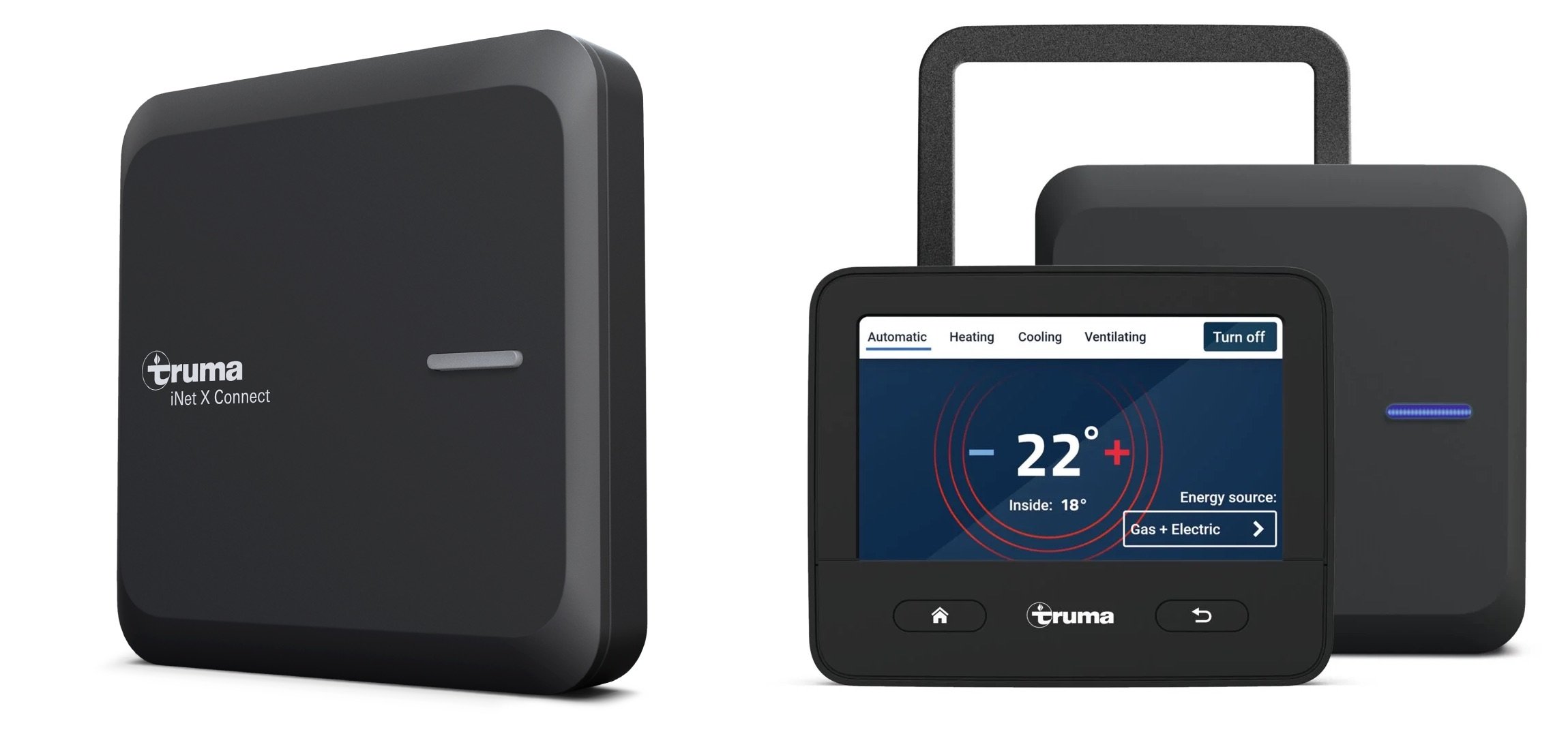 • För den som vill uppgradera sin husvagn/husbil erbjuder Truma den kompletta satsen iNet X Connectivity Set som, förutom huvudenheten, består av den 15 x 15 centimeter stora mobilkommunikationsenheten iNet Connect (kan monteras skild från själva manöverpanelen) samt en täckram som döljer skruvhålen efter den gamla CP Plus-panelen.