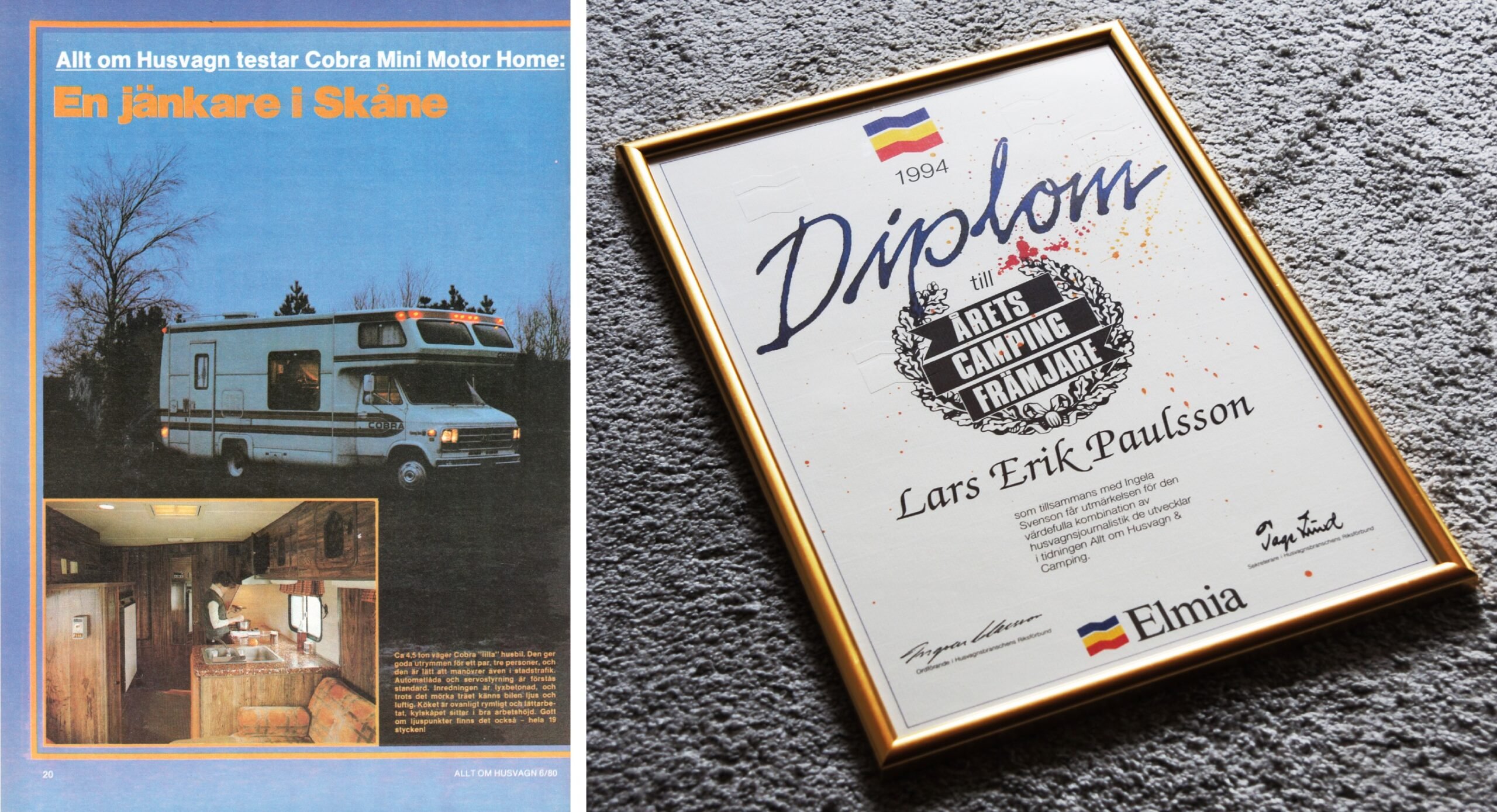 – När jag nu i efterhand tittar tillbaka på dessa år är det enbart med glädje, men också med tacksamhet. Glädje över att förhoppningsvis ha skänkt tidningens läsare givande stunder, men också tacksamhet över allt jag fått uppleva – både under våra reportage- och studieresor till husvagns- och husbilstillverkare, men också vid besök på otaliga mässor. Tacksam är jag också över att jag, tillsammans med en av tidningens dåvarande frilansare, Ingela Svenson, år 1994 av Husvagnsbranschens Riksförbund och Elmia utsågs till ”Årets Campingfrämjare”.