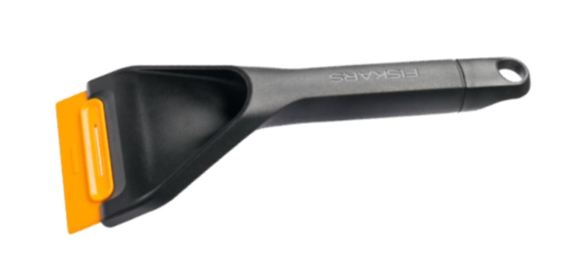 Isskrapan, Fiskars Solid, håller bilrutorna fria från is, snö, vatten och imma. Produkten är tålig och har utbytbart blad, vilket ger lång livslängd och utmärkt resultat år efter år. Har en hård sida för is och en mjuk för vatten, blötsnö och imma. Storlek 21,5 x 9,5 centimeter.