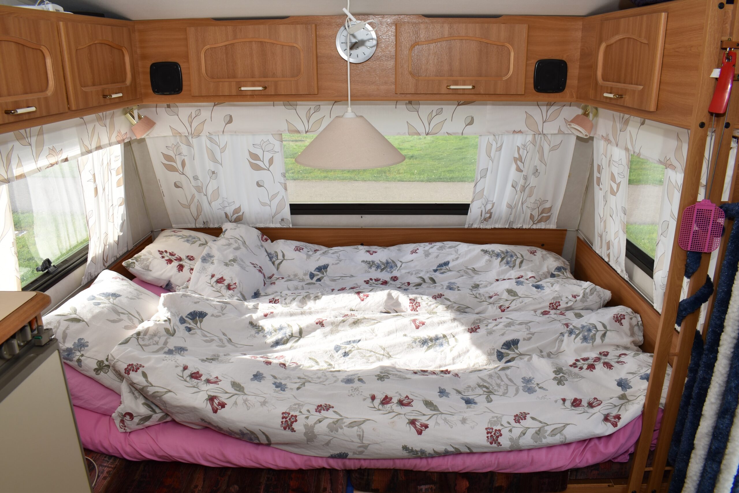 Sittgrupperna bjuder på extra bra komfort tack vare att denna Polarmodell är en så kallad High Back. Det betyder att soffornas ryggstöd är höga och kraftiga. Båda sittgrupperna kan självklart bäddas ner och enligt ägarna är sovkomforten mycket bra. Ovanför den lilla sittgruppen finns ett så kallat överbäddsskåp som blir till en extra barnsäng om de fäller ner det. Därmed kan två vuxna och tre barn med lätthet bo här.