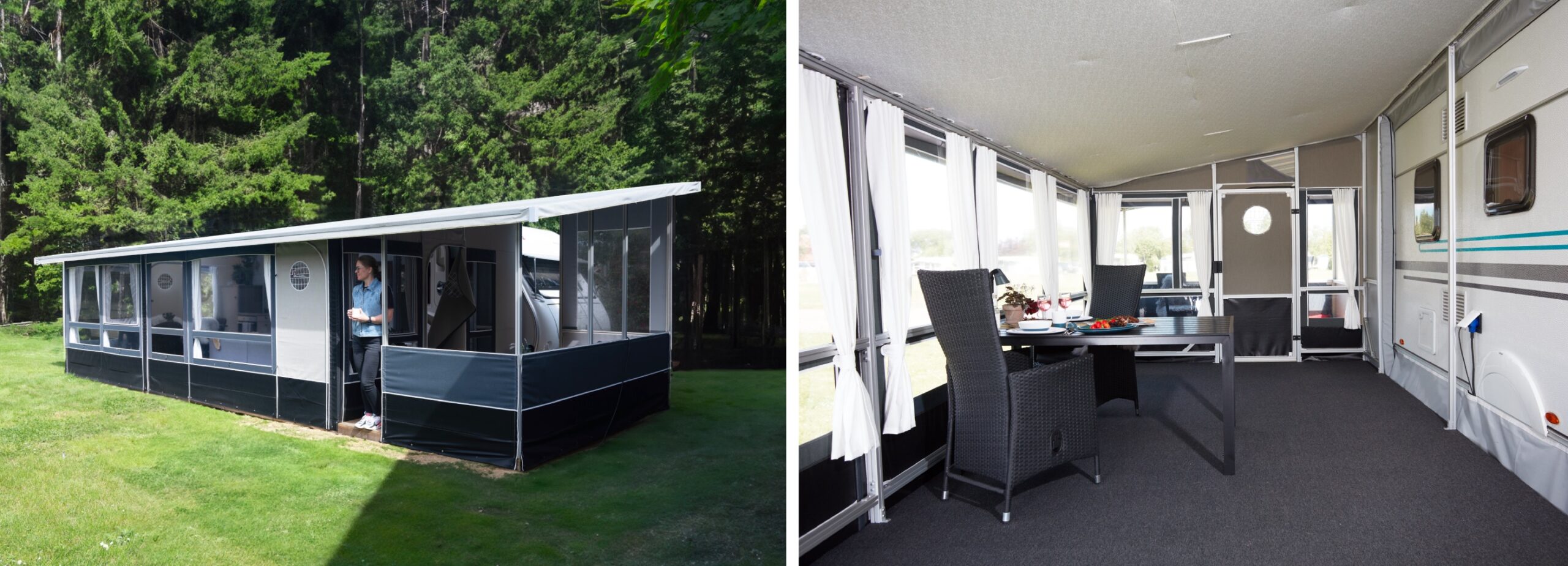 En av de viktigaste fördelarna med tälttypen är att det är så enkelt att ge sig ut på resande fot med sin husvagn – det är bara att demontera slussen mellan tältet och vagnen, montera bakväggen och köra i väg – och när ni kommer tillbaka står förtältet rest och klart.