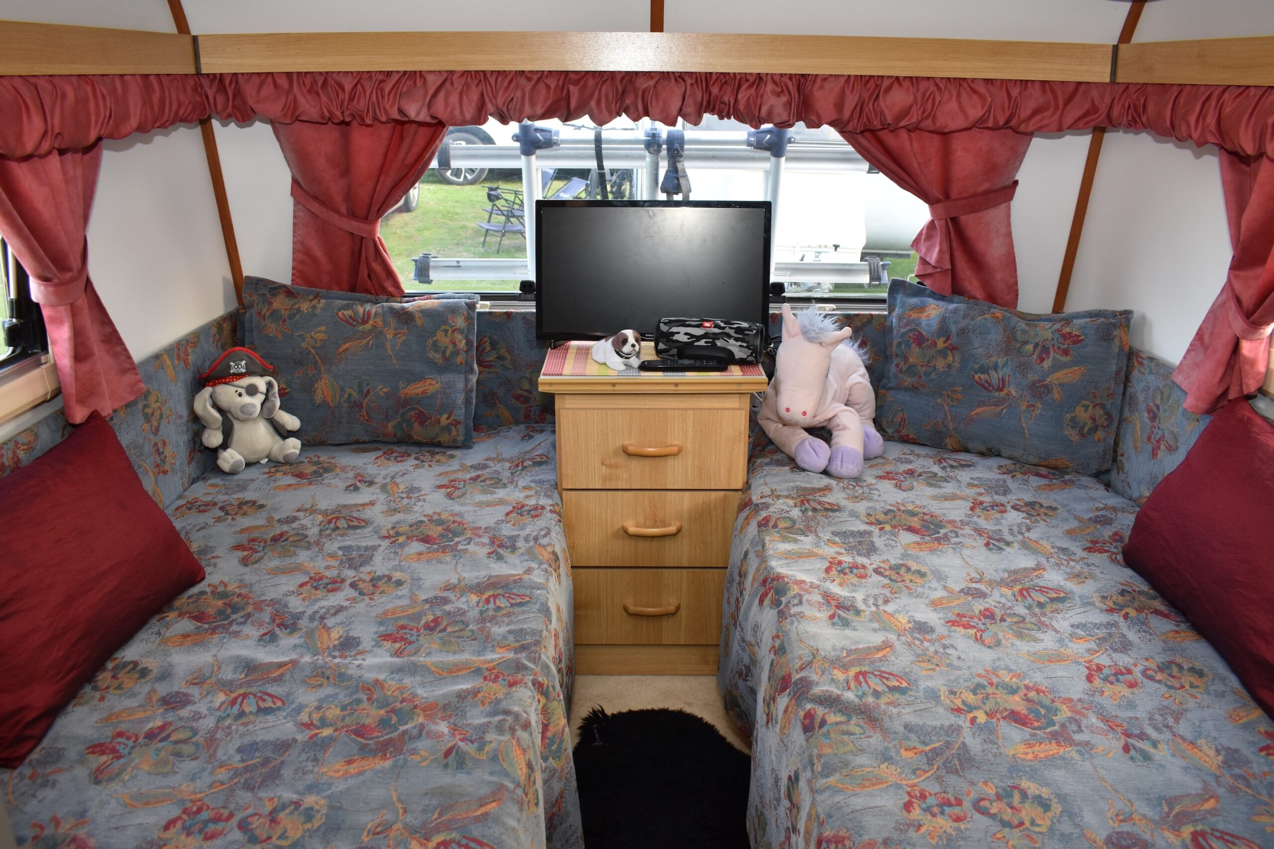 – Den är enkel, praktisk och har gott om utrymmen för att vara en 550. De nya husvagnarna är fina men inte lika praktiska. Den här har allt vi behöver, säger Lennart.