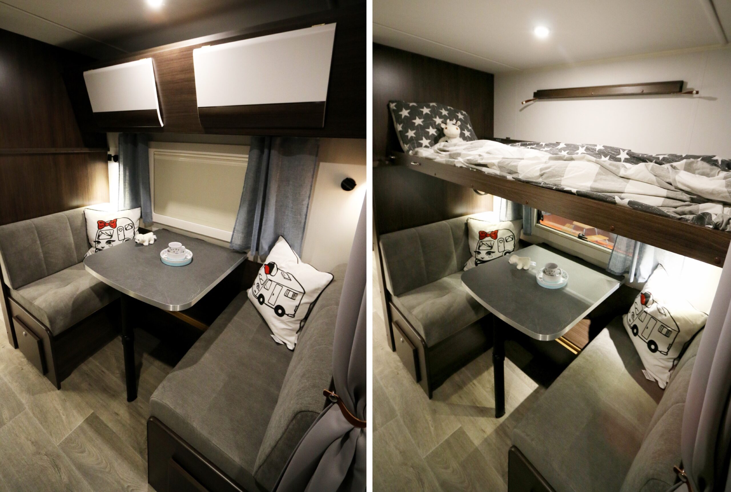 Innan vi slår oss ned i den kungliga sittgruppen (vi har hyllat den förr) hoppar vi direkt till överskåpsmodulden ovan barnens dinett. Denna kan nämningen förvandlas från förvaring till en extrabädd. Perfekt om antingen familjen är extra stor eller om barnen önskar ha någon kamrat med sig på campingäventyret.