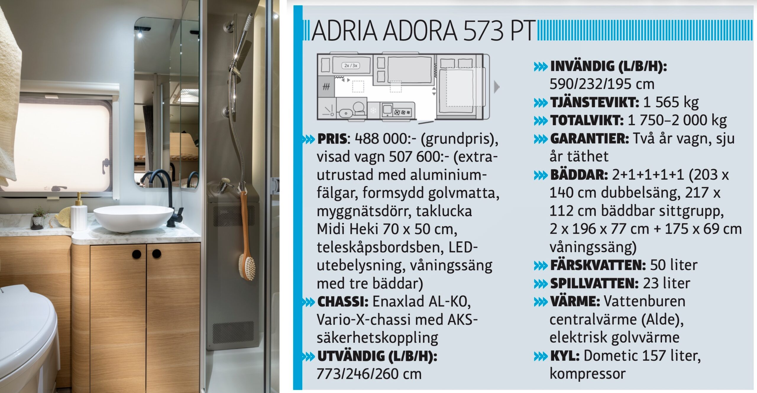 Med handen på hjärtat är det faktiskt Adria som till modellår 2026 har gjort de allra flesta förändringarna inom husvagnsindustrin (alla varumärken inräknande). Framför allt gäller det serierna Adora och Action (som vi skrev om i utgåva 11/2025).