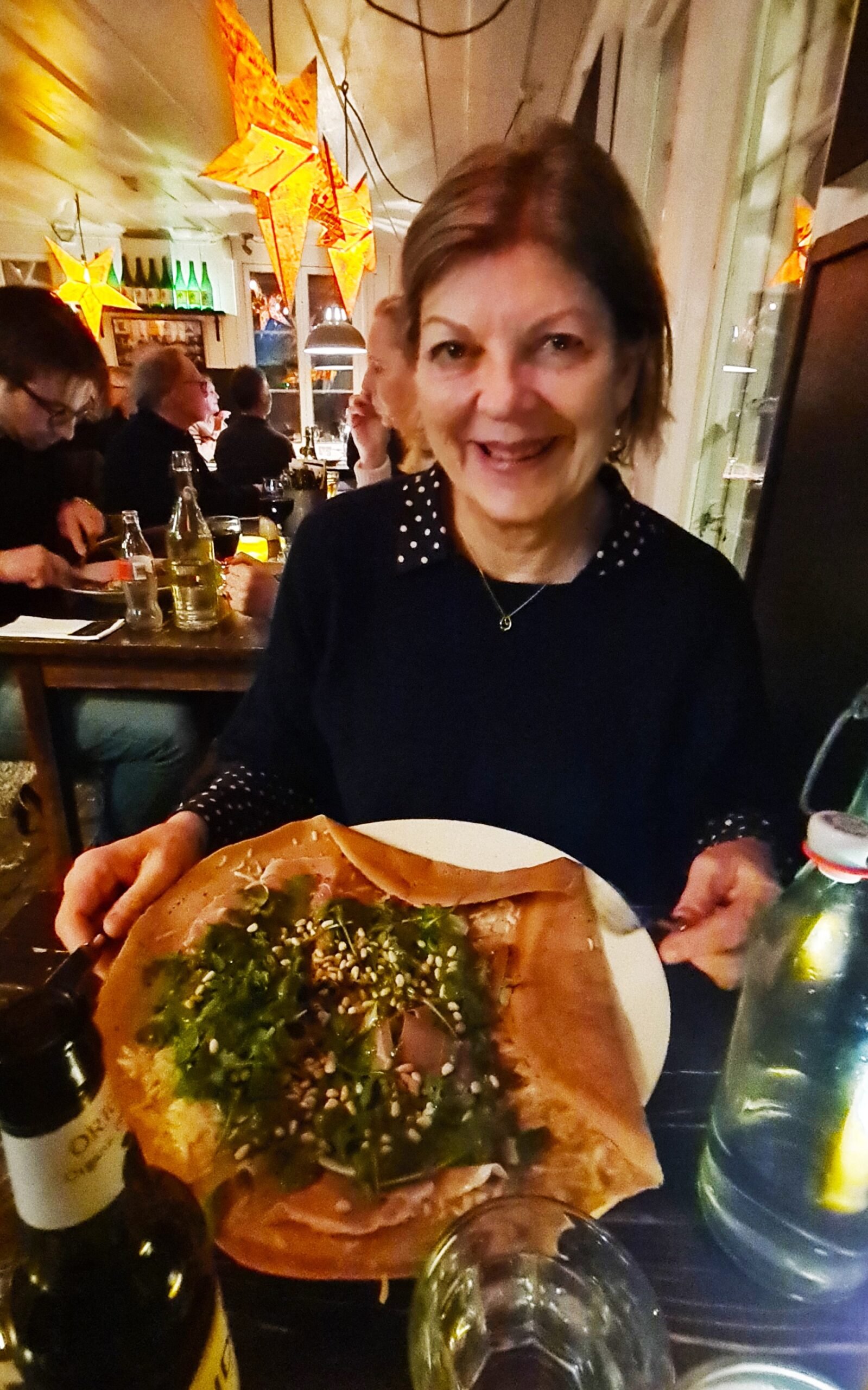 restaurangen Crêperie & Logi, inrymt i ett litet, strykjärnsformat hus mittemot härliga Wisby Ost, där skyltar annonserar höstens skörd av svart gotländsk tryffel.