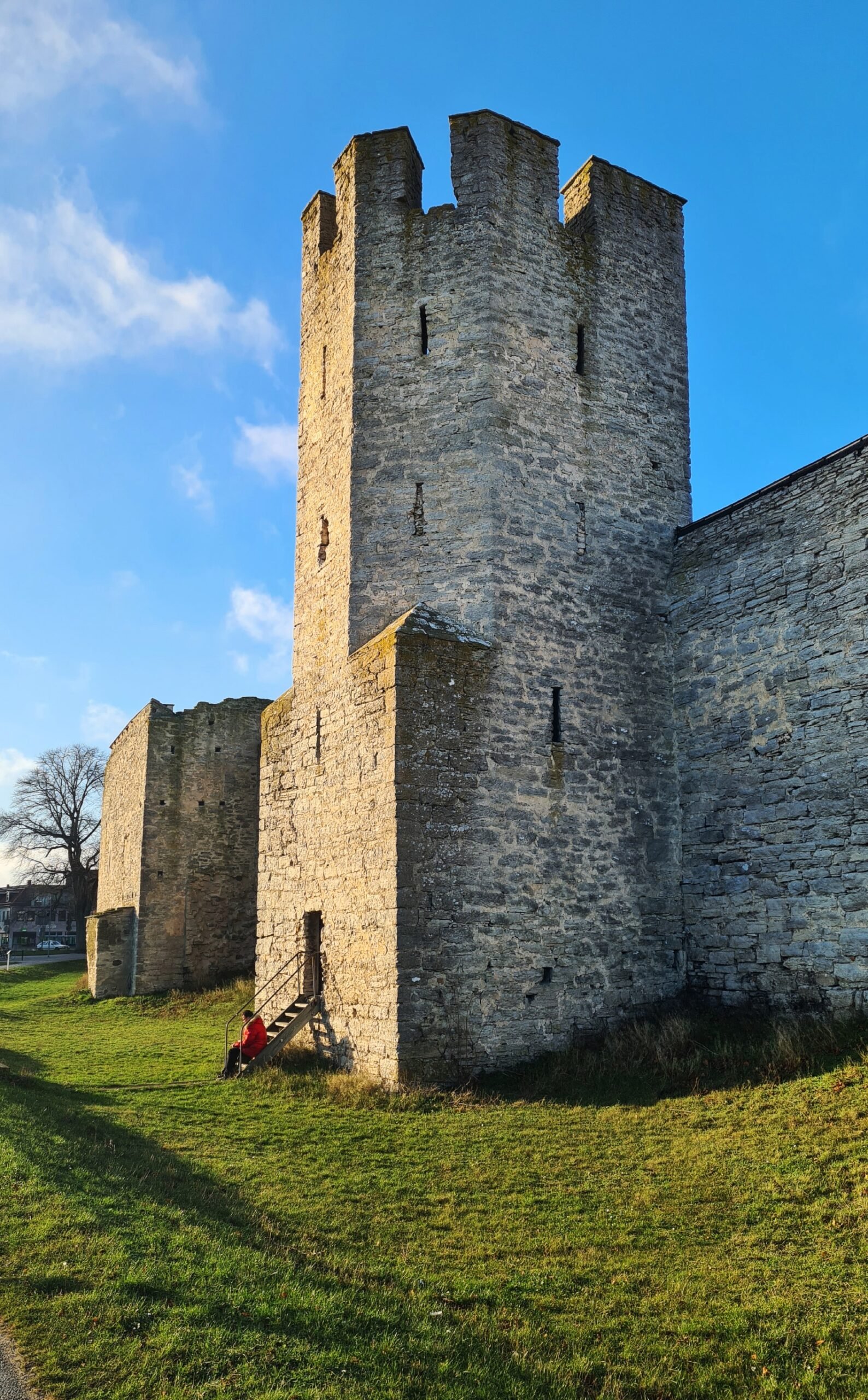 Sedan måste vi så klart göra ett puss-stopp i Kärleksporten. Superturistigt så klart, men i advent är vi de enda här. Ute på havet går det vita gäss, men innanför ringmuren kommer blåsten inte åt oss. Snart traskar vi genom Norderport och exponeras för vinden igen, fast då har förmiddagssolen precis trängt igenom molnen och ger lite extra värme.