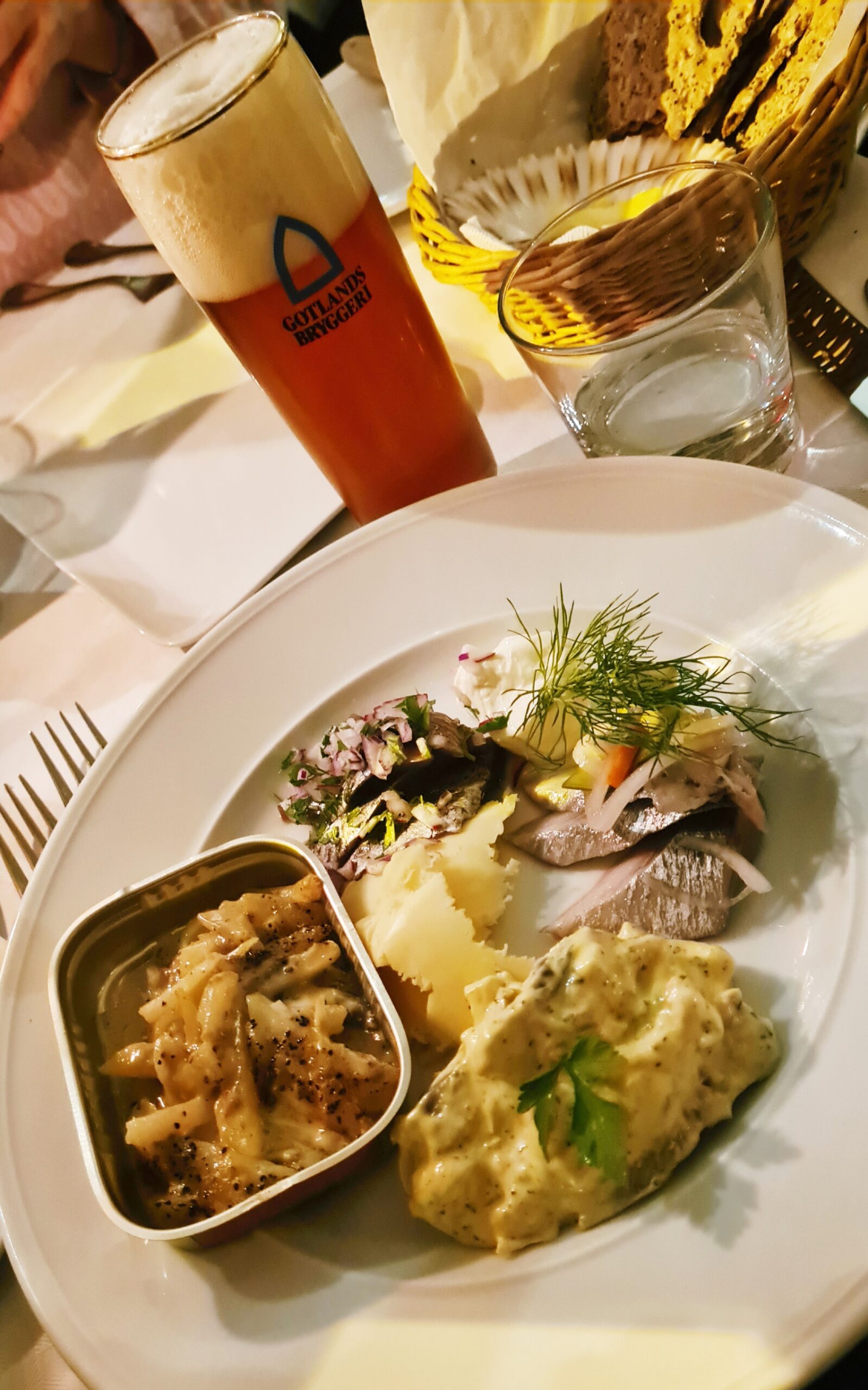 I köket syns krögaren Anders Österdahl lägga sista handen vid de rätter som ska ut – för vår del blir det en julig entrérätt med tre sorters inlagd sill och Jansons frestelse. Till det varsin IPA från ett av stadens två mikrobryggerier. Vi hade tänkt boka en guidad fredagstur med smakprovning på Gotlands bryggeri men det ligger en bra bit bortom ringmuren så det fick vara.