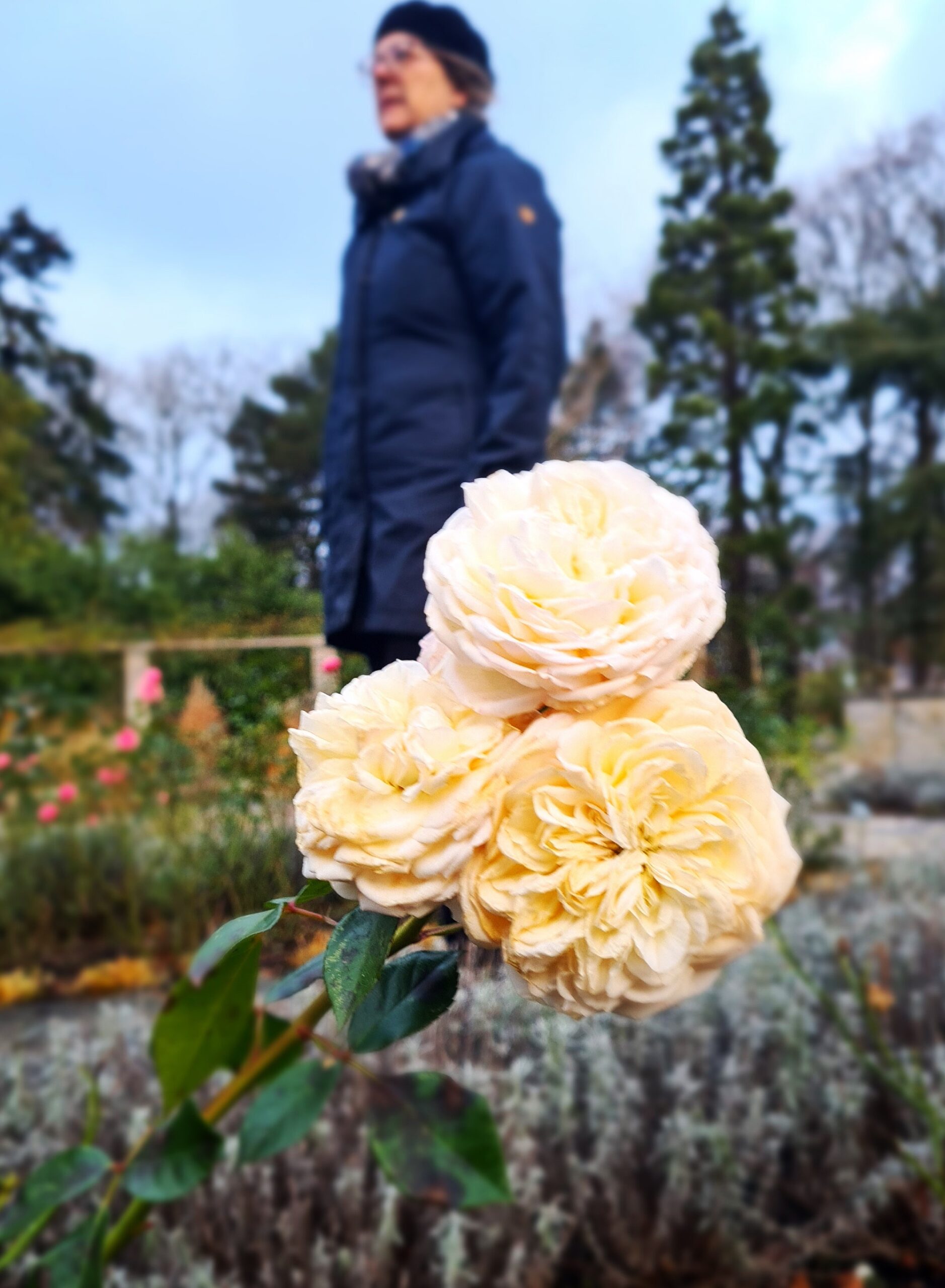 Vi börjar lördagen med De Badande Wännernas botaniska trädgård där vi så klart hittar ännu fler blommande rosor även fast alla andra växter gått i vintervila.