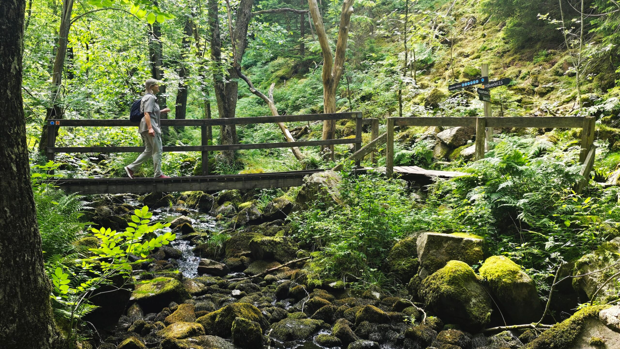 De flesta av Söderåsens markerade leder utgår från den nordliga Skåralid-entrén. Vi satsar på den knappt 8 kilometer långa Hjortsprångsrundan. Ett perfekt val ska det visa sig. För längs vägen får vi allt det som gör nationalparken värd att besöka: en rar liten sjö med karska sångsvanar, porlande vattendrag, massor av sjungande fåglar dolda av den lummiga grönskan, stora rasbranter och trolsk- och ibland väldigt brant terräng.