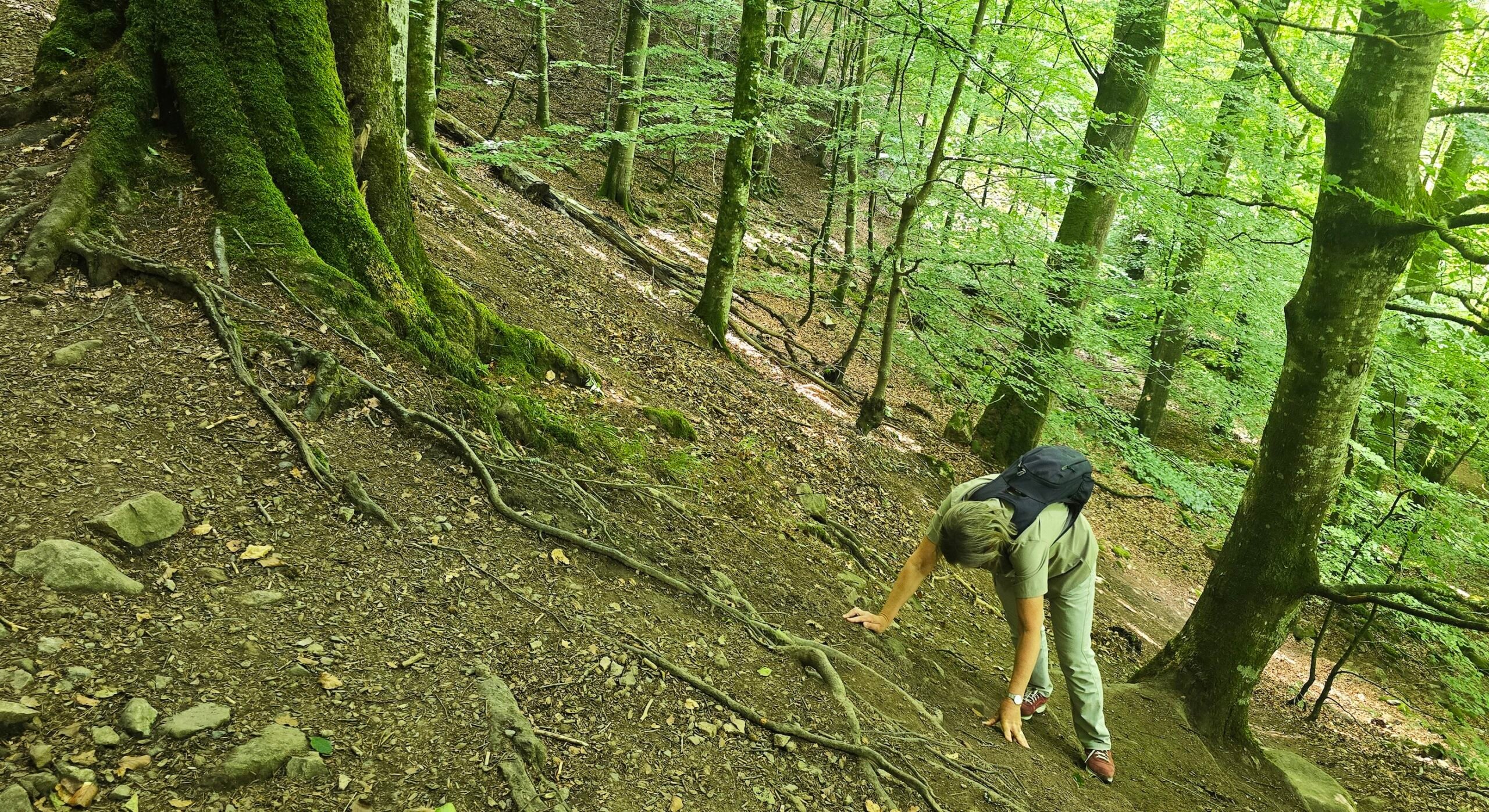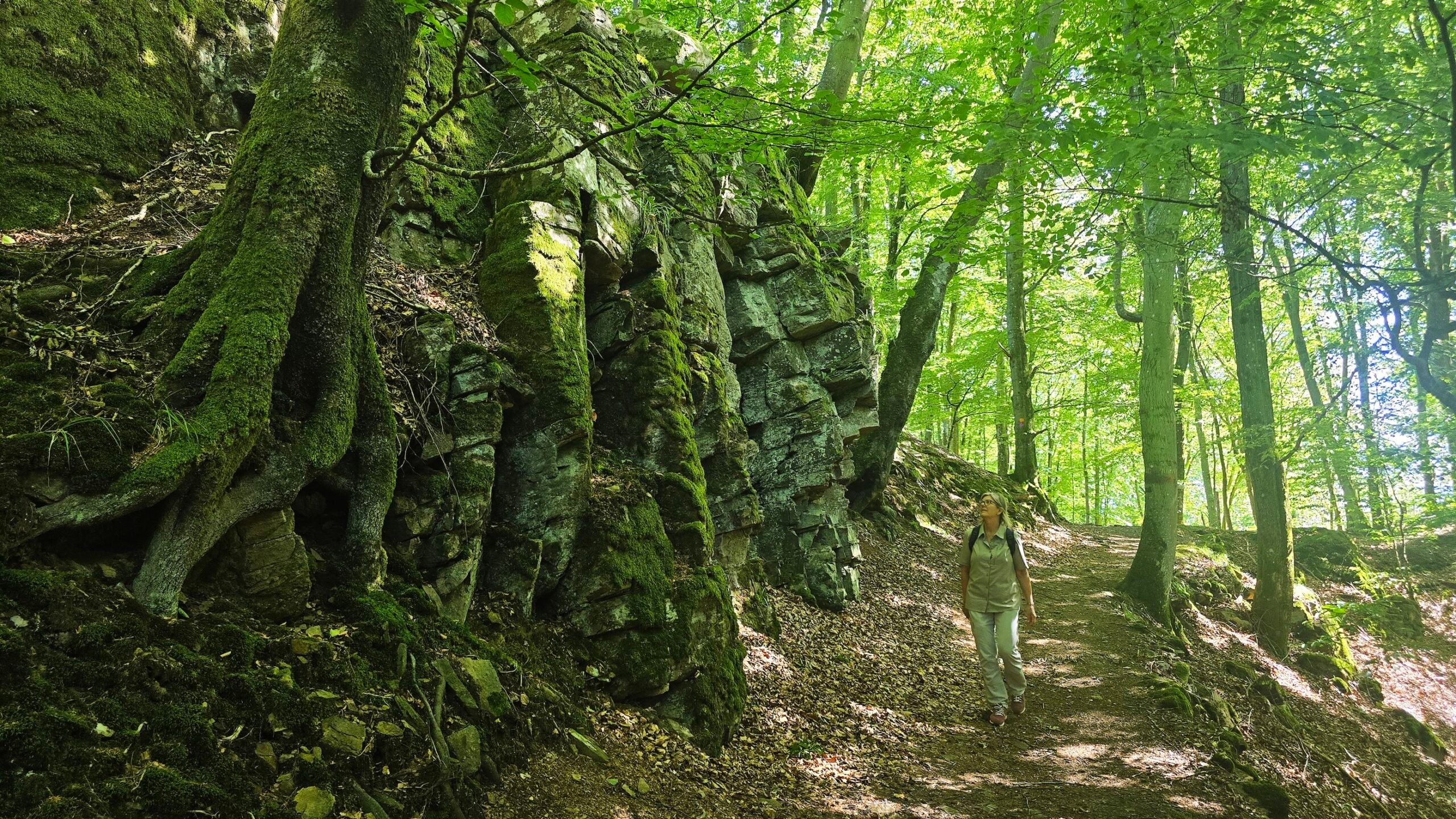 När du vandrar under rasbranterna – bland tiotusentals stora stenar och klippblock – behöver du knappast vara orolig för att det ska komma stenar flygande utan kan ägna dig åt den ljuvliga bokskogen, all fågelsång någonstans däruppe i lövverken och – inte minst – var du sätter fötterna. För en del av Söderåsens vandringsleder är rejält knöliga, steniga och fylld av lömska rötter.
