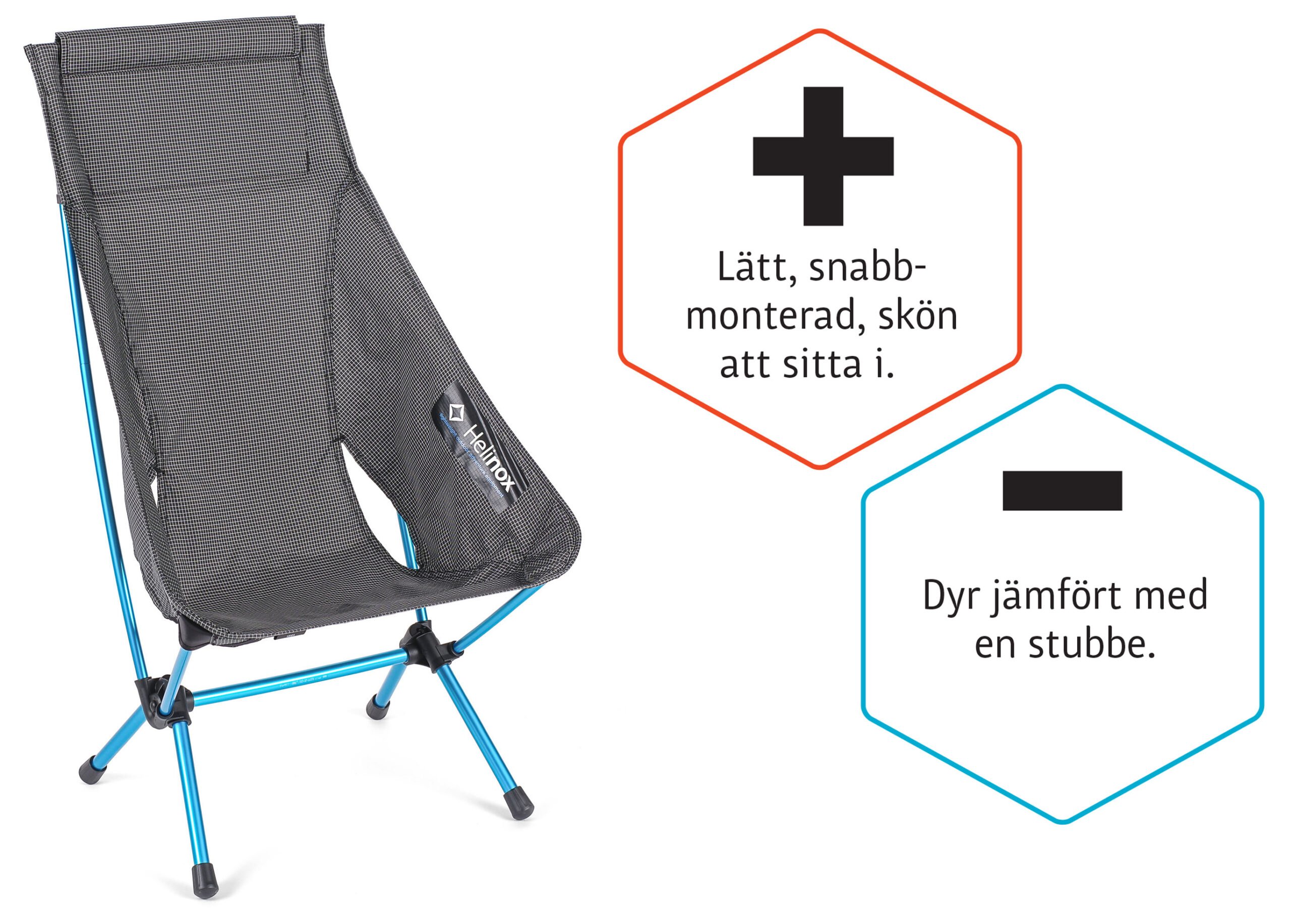Googla campingstol och du får hundratals träffar. I Sverige har de kanske mest använts på Böda Sand samt vid jakt och fiske, men sedan några år inspireras vi allt mer av lägerliv à la USA och Oceanien med brasa och gitarr. Och kommer du till lägerplatsen med en pickup är det klart du ska slänga fram några stolar. Helinox räknas som världsledande när det kommer till lätta campingprodukter med idiotsäker konstruktion, andra som har stolar i liknande stil är till exempel Urberg, Outwell och Nordisk.