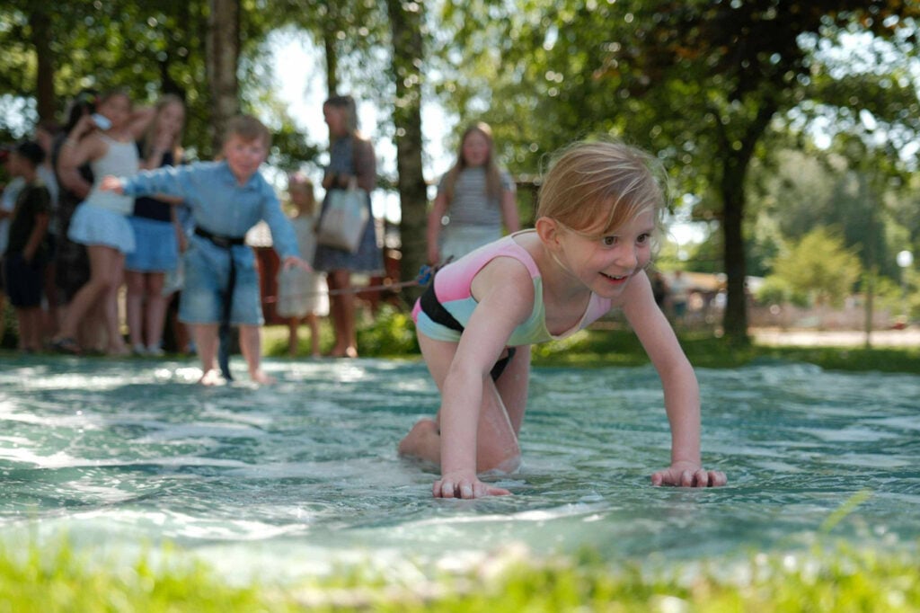 En aktiv dag på Gullbrannagården kan börja på ett sätt som få andra campingar erbjuder – med sång utanför förtältet. Det är ledare som samlar barnen till lek, musik och tävlingar, något som lockar många deltagare.