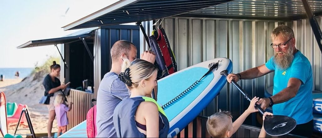 För den mer aktive strandälskaren finns det möjlighet att paddla SUP, spela beachvolley, träna på utegymmet, yoga eller spela strandfotboll. Det brukar vara enkelt att dra ihop ett lag tillsammans med de man stöter ihop med på campingen.